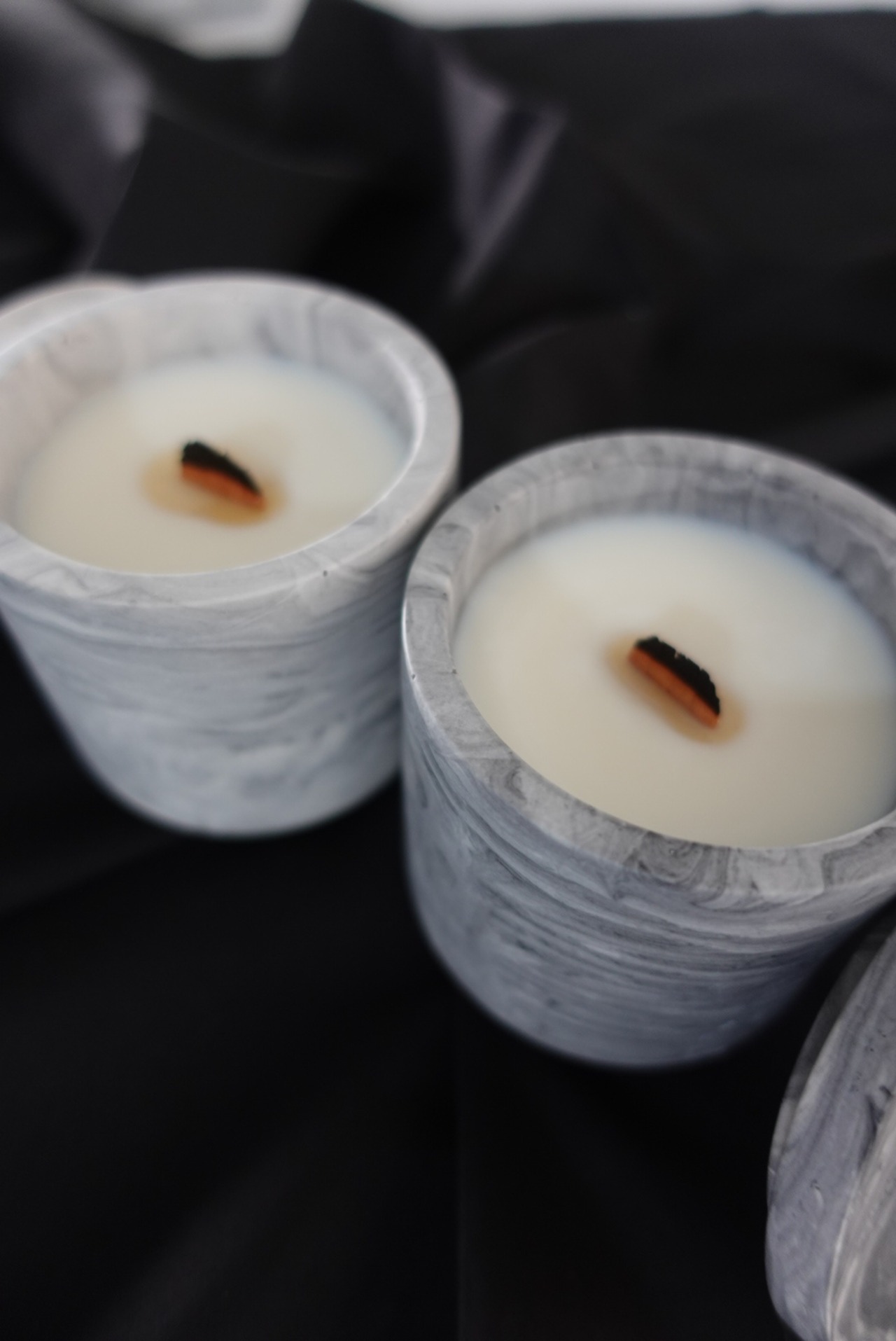 天然精油のやさしい香りと、マーブル模様が美しいジェスモナイト容器のキャンドルセット。